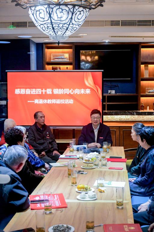 苏为泽书记代表学校对返校的离退休教师们表示热烈欢迎,衷心感谢离退休教师们对学校做出的贡献。他向在座离退休教师们介绍了学校的组织机构、治理体系、师生规模等发展情况,分享了学校未来发展的目标愿景,并为离退休优秀党员颁发了荣誉证书。