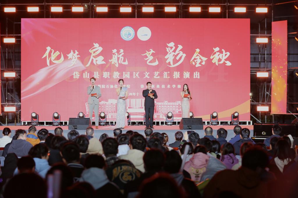 11月20日晚,石油化工学院联合岱山县职业技术学校在岱山县职教园区举行了“化梦启航,艺彩金秋”文艺汇报演出。校领导苏为泽、孔志光、张谷燕、曹志斌、张海波及学校安全保卫部、办公室以及园区两套行政班子人员、部分合作企业和岱山县相关部门领导到场,与职教园区全体师生共同观看了演出。