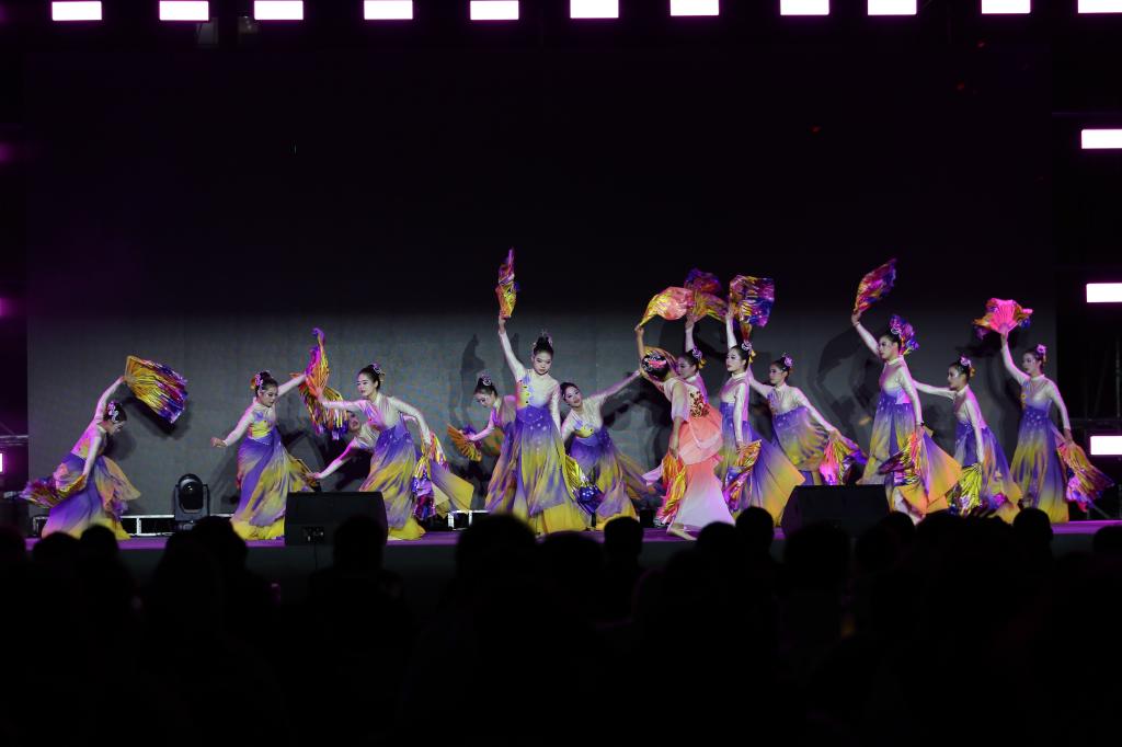 本次演出在学校舞狮队的《龙腾虎跃》中拉开帷幕,共分为三个篇章。第一篇章“扬帆启航”以充满情感和故事性的歌舞、情景剧,展现了历史壮阔和文化魅力;第二篇章“筑梦成长”通过舞蹈和音乐演绎,传递出师生融洽的关系和校园生活的美好;第三篇章“展望前行”用充满活力的舞曲表达了学生们对个人成长和学校发展的憧憬与向往。随着熟悉的歌曲《篇章》,参与演出的师生们再次登台,共同演绎这首充满青春气息的歌曲,台上台下融为一体,所有观众随着音乐节奏挥动双臂,齐声高歌,将现场气氛推向了最高潮。