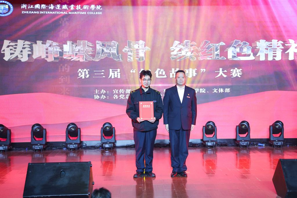 经过激烈角逐,机关党总支的《从西藏到浙江 跨越5000公里的“那舟”情》荣获特别表演奖,学校党委书记苏为泽为曲培颁奖并给予鼓励。航海工程学院党总支的《破晓》荣获一等奖;石油化工学院党总支的《永不消逝的电波》、现代港口贸易学院党总支的《何为青年,青年何为》荣获二等奖;马克思主义学院党支部、校团委的《忠骨所在之处,即是家乡》、海洋装备工程学院党总支的《百年沧桑》、国际教育学院党总支的《五四之光》、海洋旅游学院党总支的《海战英雄邓世昌》荣获三等奖。