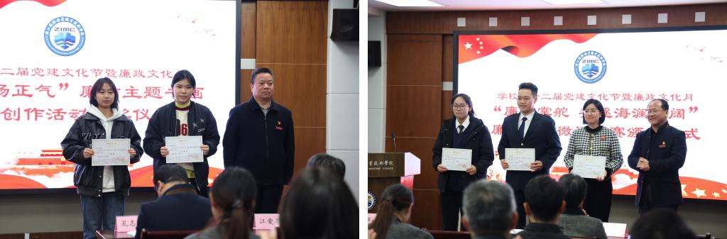 12月11日下午,学校举行廉洁教育微课大赛、第十二届党建文化节暨廉政文化月闭幕式,校领导、各党总支(直属党支部)书记和纪检委员、师生代表等共70余人参加活动。