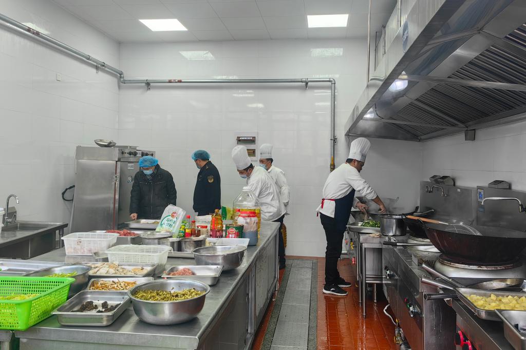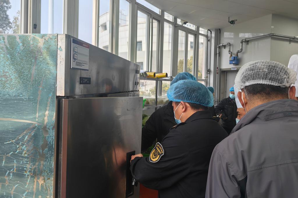 在加工操作间里,检查人员不放过任何一个细节。他们查看了厨师们的操作流程,强调生熟食材必须严格分开,避免交叉污染。对于餐具清洗消毒区域,工作人员检查了清洗设备的运行情况,以及餐具消毒记录,确保每一套餐具都经过规范的清洗消毒程序,为师生提供安全卫生的用餐器具。