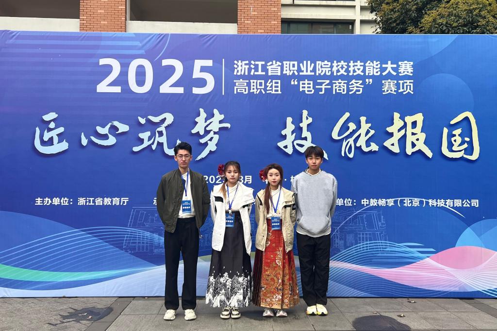 近日,现代港口贸易学院跨境电子商务专业团队积极参与了2025年浙江省职业院校技能大赛(高职组)四个竞赛项目,完美收官。在比赛过程中,学子们凭借扎实的专业功底与卓越的团队协作能力,于各个赛项中崭露头角,最终取得了 “一银三铜”的优异成绩。