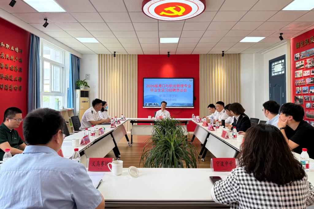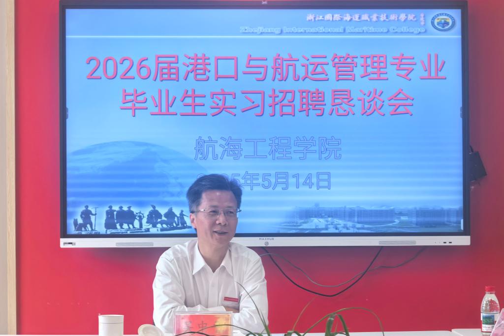 5月14日,航海工程学院在海慧楼309会议室召开2026届港口与航运管理专业毕业生实习企业恳谈会。校党委副书记、校长吴中平,办公室副主任李军、航海工程学院行政班子和浙江开瑞国际物流有限公司、浙江久航供应链管理有限公司、宁波世邦国际货运代理有限公司等13家企业代表参加会议,会议由航海工程学院综合办主任姜波主持。