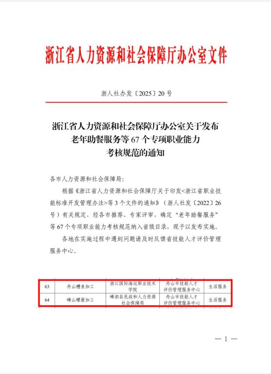 近日,浙江省人力资源和社会保障厅办公室发布了新一批专项职业能力考核规范目录。我校海洋旅游学院食品团队何定芬等老师主持的《舟山糟鱼加工》专项职业能力考核规范,以及为嵊泗县民政和人力资源社会保障局服务申报的《嵊山螺酱加工》专项职业能力考核规范,同时成功入选省级目录。这是继《嵊泗贻贝加工》项目以来的第3个我校开发的省级专项职业能力考核规范,为我市技能人才助力共同富裕添砖加瓦。
