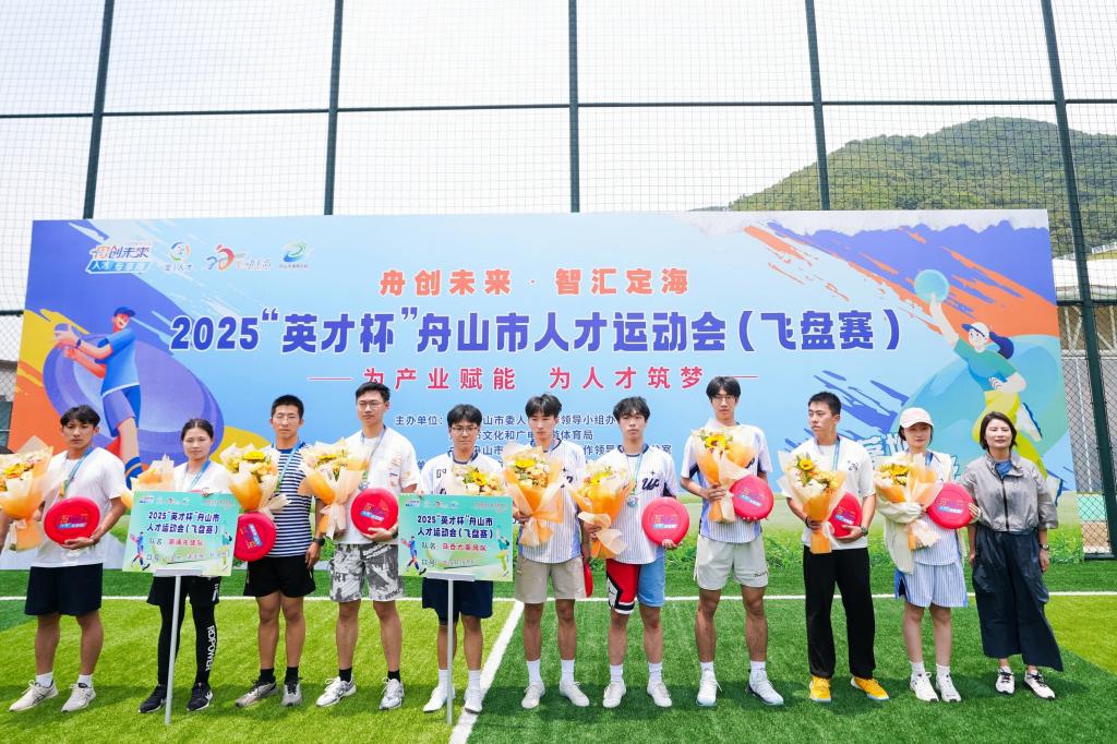 5月25日,由舟山市委人才办、市文化和广电旅游体育局联合举办的2025“英才杯”舟山市人才运动会飞盘赛在定海区足球公园举行,全市各系统、领域19支青年人才队伍110余人跨界集结。由我校文化体育部李成广指导,文化体育部王亚鹏、刘璐瑶,石油化工学院夏远翔、孙迦勒以及海洋装备工程学院王行嘉同学组成的“潮涌先锋队”战队,一路过关斩将,取得了第二名的好成绩。