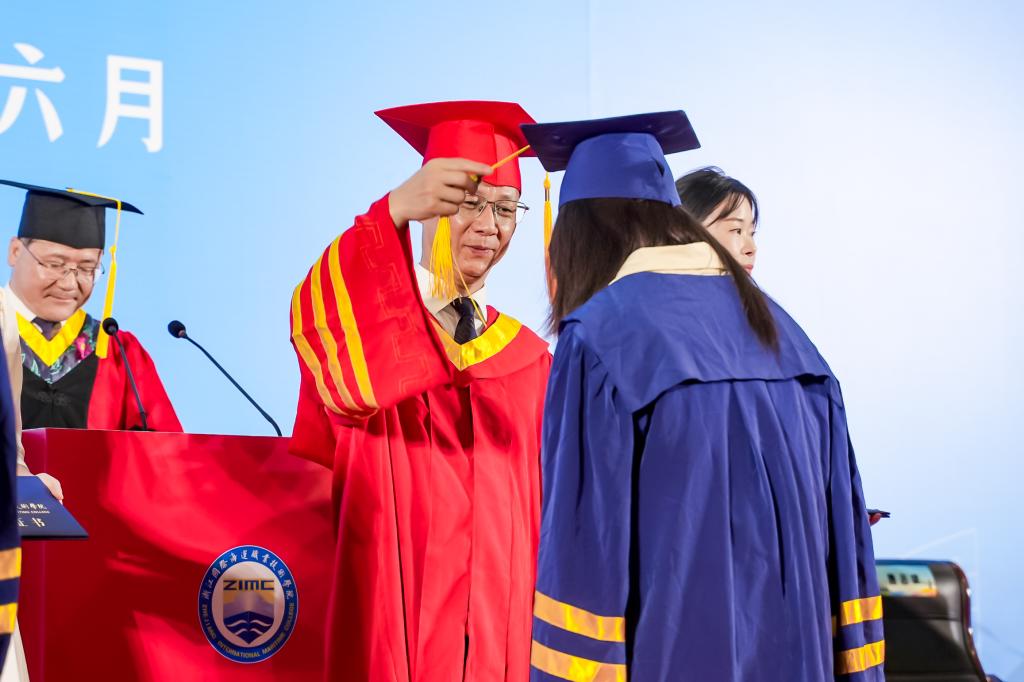校领导及各二级学院院长为毕业生代表逐一颁发毕业证书、拨穗正冠并合影留念。