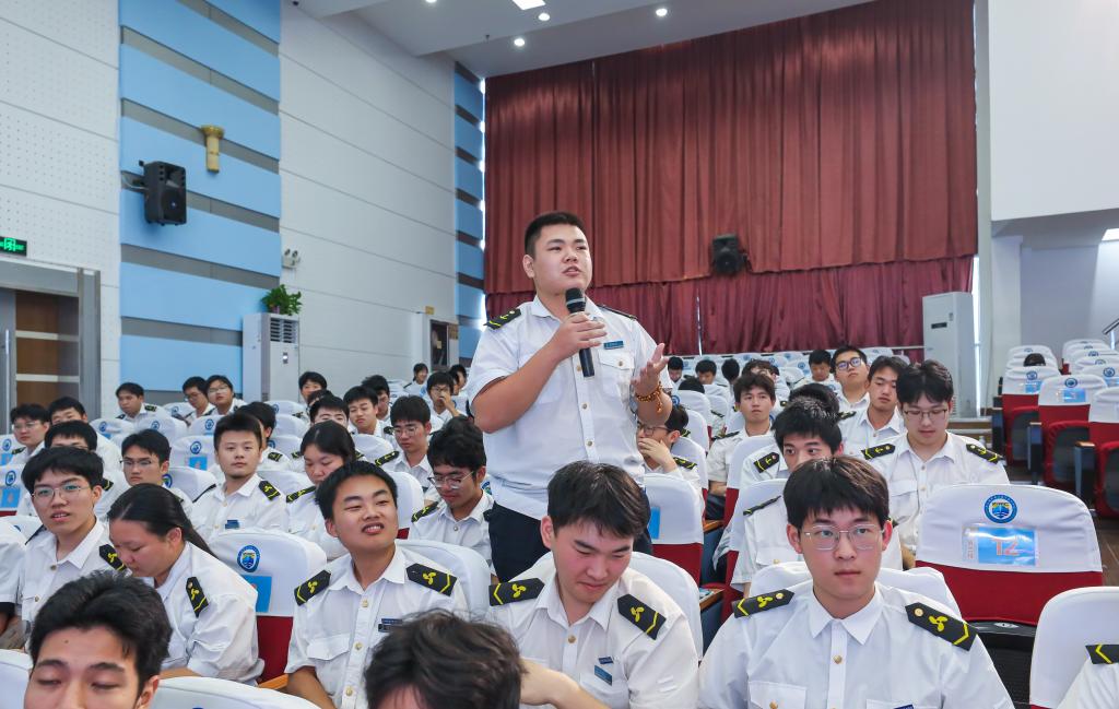 当天,学校还举办了“‘蓝海红帆 同心共航’对话航海人之船长面对面”讲座。华洋海事中心有限公司总船长吴佳明与同学们面对面深入交流,饱含深情且干货满满的演讲带给同学们许多共鸣,并对未来的航海生活心生向往。