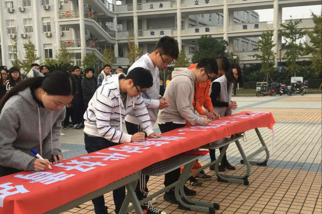 11月27日,国际教育学院在升国旗仪式上举行“庆十九大·行文明礼·做新时代好青年”宣誓签名仪式。