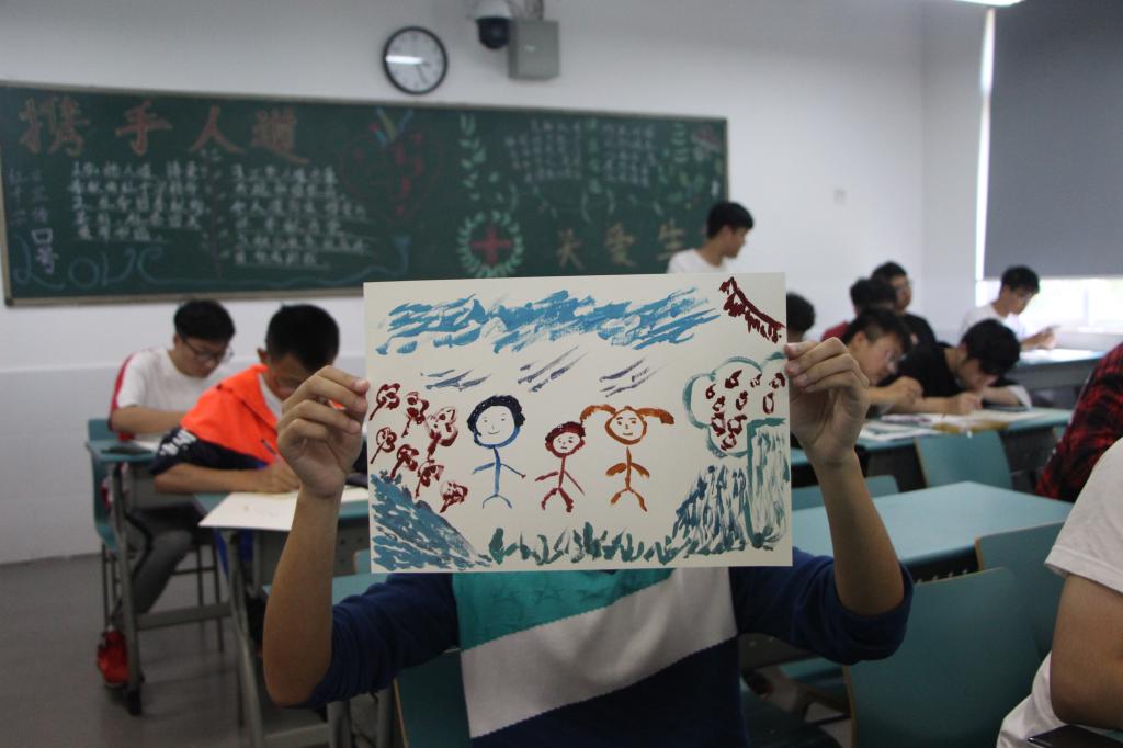 40余名同学来到教室,通过绘画的形式画出了眼中的自己,部分学生通过绘画自己与父母亲在一起的画面来表达自己对家人的爱。2017级机电工程1班林易速获得了本次自画像比赛一等奖。
