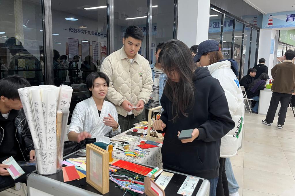 秉承“物尽其用、良性循环”的理念,同学们拿出珍藏已久的“宝贝”。摊位上种类繁多、充满趣味的商品琳琅满目,从学生工作室的“海”字号文创产品、原创书签到二手耳机、玩偶、饰品等都出现在了本次“跳蚤市场”上,吸引众多“顾客”前来逛摊、驻足、选购。为增强活动氛围,在活动过程中,校学生会还邀请了“弦心社”进行现场表演,一首首耳熟能详的歌曲吸引了同学们的广泛参与,在欢声笑语中增强了本次活动的趣味性,唤起了同学们参与活动的积极性和主动性。