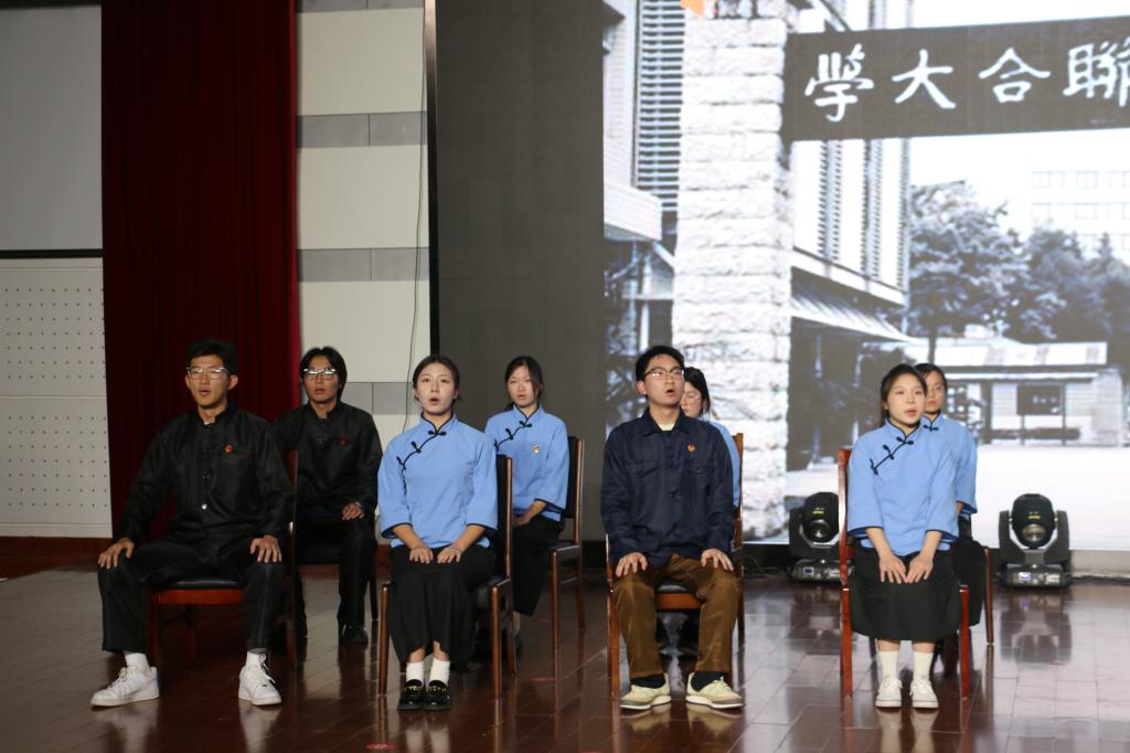 舞台剧、快板、二胡独奏等精彩节目轮番上演。校团委的《战火中的大学生》讲述了卢沟桥事变后国立西南联合大学的学生们在战火中学习、成长、经受考验,最终成长为抗日救亡中坚力量。交投集团张东明带来的二胡独奏《赛马奔腾》仿佛瞬间让同学们感受到了将士挥戈、万马奔腾的气息。广播站带来的《党的二十大报告竹板词问答》、交投集团带来的歌曲《我的中国心》寄托着新时代的青年们对祖国的美好祝福和对未来的向往。