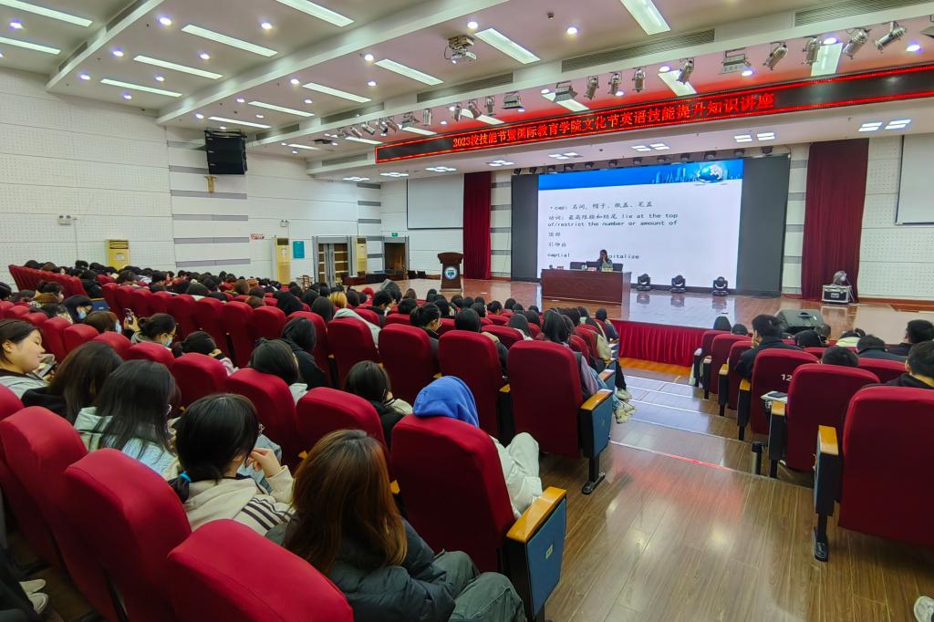 为了提升我校学生的英语学习能力,12月11日,国际教育学院邀请了舟山市外事翻译与服务中心副主任、舟山市翻译协会秘书长沈丹妮老师,在图书馆四楼报告厅作了《口译学习与实际运用》专题讲座。讲座由国际教育学院院长吴旭光主持,学院全体英语教师以及来自全校的515名学生参加讲座。