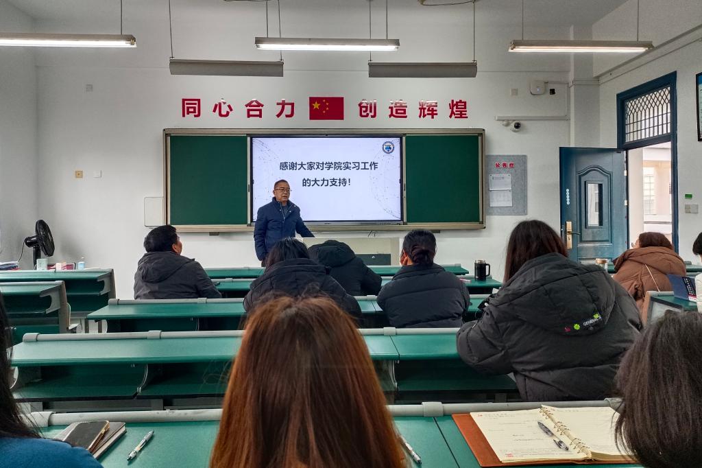 随后,吴旭光院长传达了学校关于实习生安全教育会议的具体内容。他强调,要充分认识实习安全管理工作的重要性,进一步提高思想认识,强化责任担当。学院领导、辅导员、班主任及指导老师积极配合,切实压实压紧工作责任,要加强对实习工作的日常管理,时刻关注实习学生的情况,始终把学生安全放置首位,给予实习学生更多就业指导和人文关怀,及时解决学生在实习过程中的各种问题,确保学生的实习工作圆满完成。