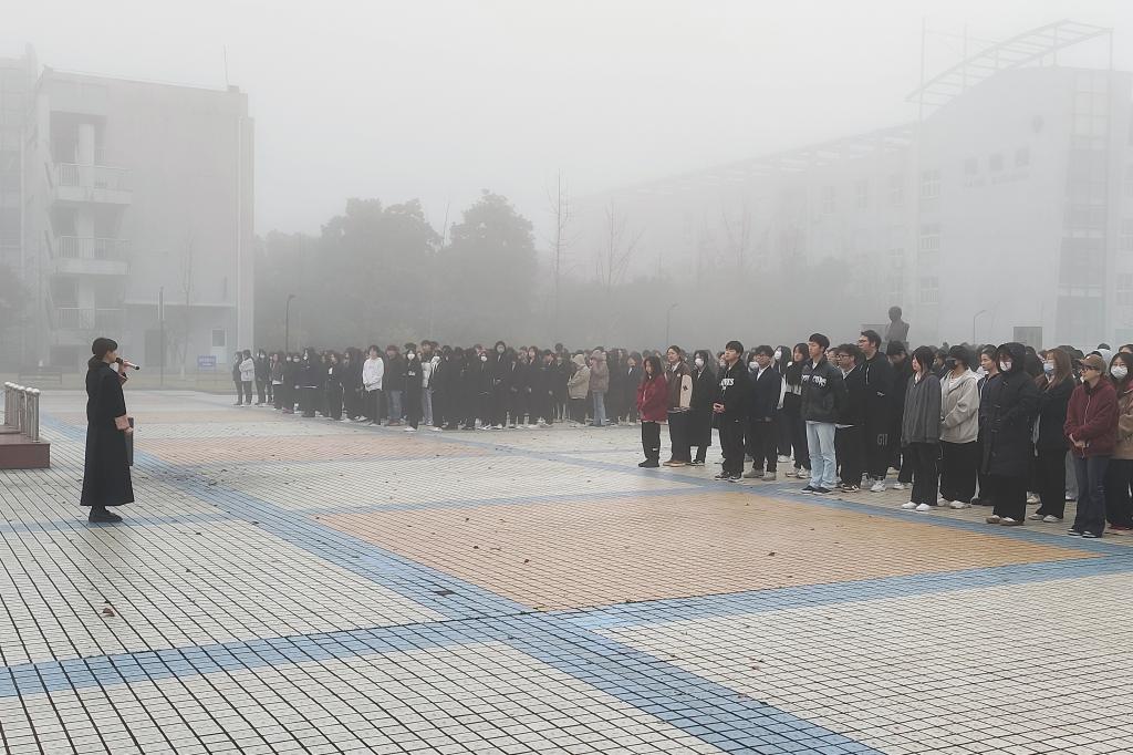 伴随着国歌,五星红旗缓缓升起,大家肃立共唱国歌、行注目礼,共同感受庄严时刻。随后,学生代表郑沁同学上台发言,她向同学们介绍了数字化改革对人们生活带来的巨变,真诚呼吁同学们认真学习,为全面推进中华民族伟大复兴奉献青春和智慧。