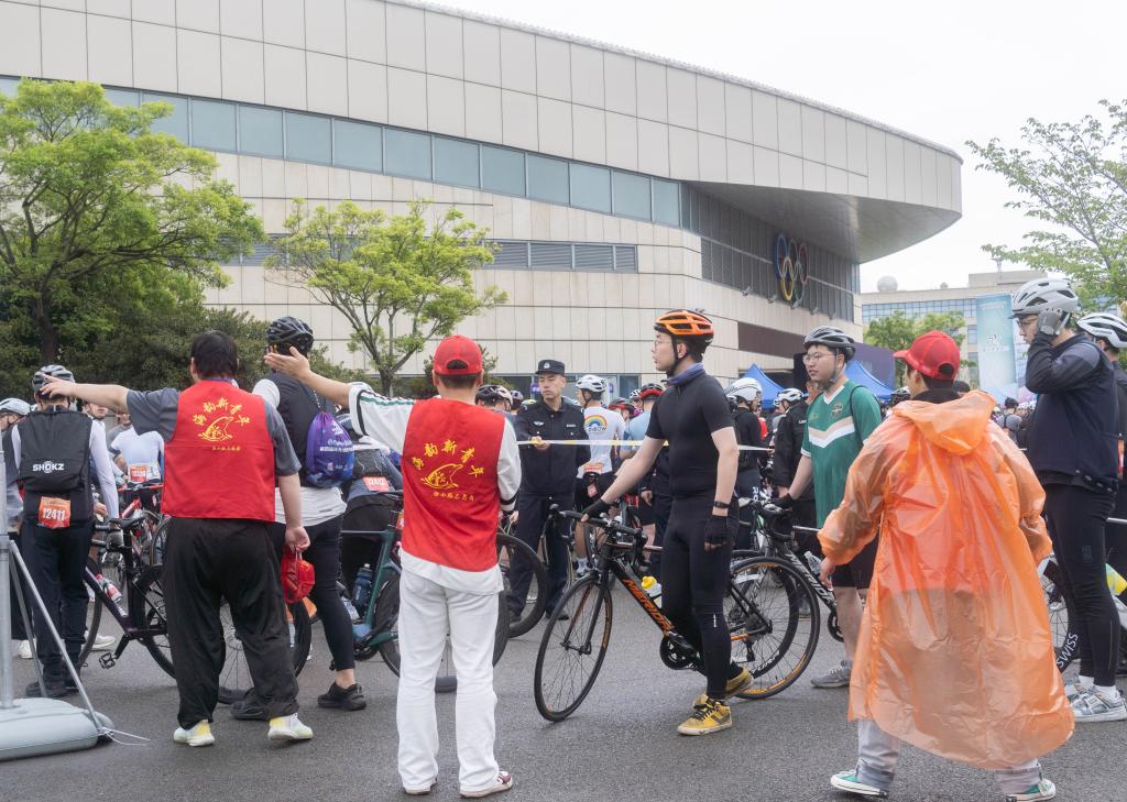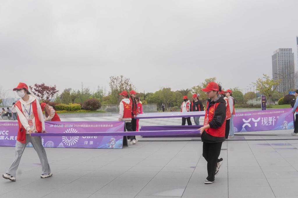 4月20日,5000余名来自五湖四海的骑行爱好者来到美丽的舟山海岛,即将参加第四届环舟山自行车骑游大会,在签到处迎接这些远方客人的是穿着“海韵新青年”红色马甲的海小豚志愿者们。