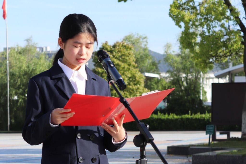 校团委学生负责人、现代港口贸易学院2022级跨境电商1班戴丁怡作为学生代表发言,她表示,希望同学们要在学习中明确努力方向;要在阅读中拓展知识视野;要在生活中练就强健体魄;要在实践中厚植本土情怀。她号召全体青年学生“建设良好的学风,从我做起!”