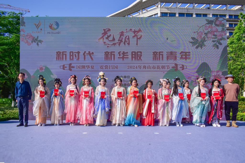 5月18日下午,舟山市的樱花公园内,花香四溢,人头攒动。由舟山市团市委主办、舟山市汉文化协会承办的2024年舟山市花朝节“花神”才艺比赛正在上演,吸引了众多市民和游客的目光。