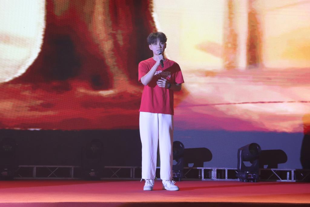 灯光流转间,选手们陆续登台,他们或轻声吟唱,或激昂高歌,每一句歌词都承载着他们对音乐的热爱和执着。《人世间》《浮夸》《Whataya want for me》……悠扬的歌声回荡在体育馆,赢得了现场师生观众的阵阵喝彩。
