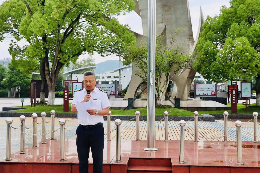 升国旗仪式在庄严嘹亮的国歌声中拉开序幕。2023级航海技术2班胡骏豪同学作为学生代表发言。他表示,海员是勇敢的探险家,是海洋的开拓者,是国际贸易的推动者。作为航海工程学院的学生、未来的航海人,面对发展我国海洋运输,传承和发扬海员精神的重大使命,我们不仅要认真学习,扎实专业知识,锻炼职业技能,落实“致远”“致勤”“致用”的学风,还要强化体能素质,提高身体负荷能力,为将来高强度工作打下基础,为海洋强国建设贡献自己的力量。