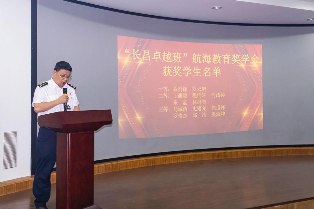 黄华副院长宣读了2025届“长昌卓越班”航海教育奖学金获奖学生名单。他希望全体同学以获奖者为榜样,秉持勤学善思的钻劲、尊师爱校的品格、戒骄戒躁的定力,在比学赶帮超的浓厚氛围中全面提升综合素质。