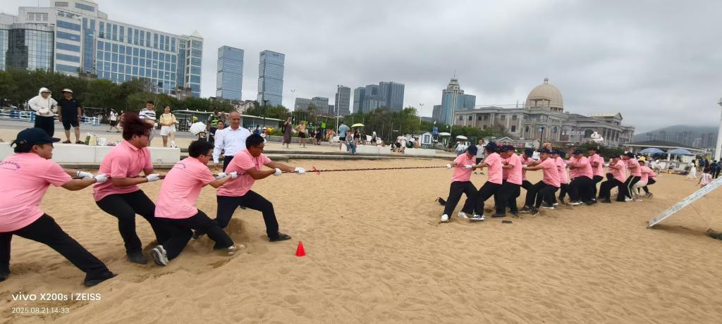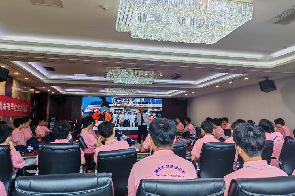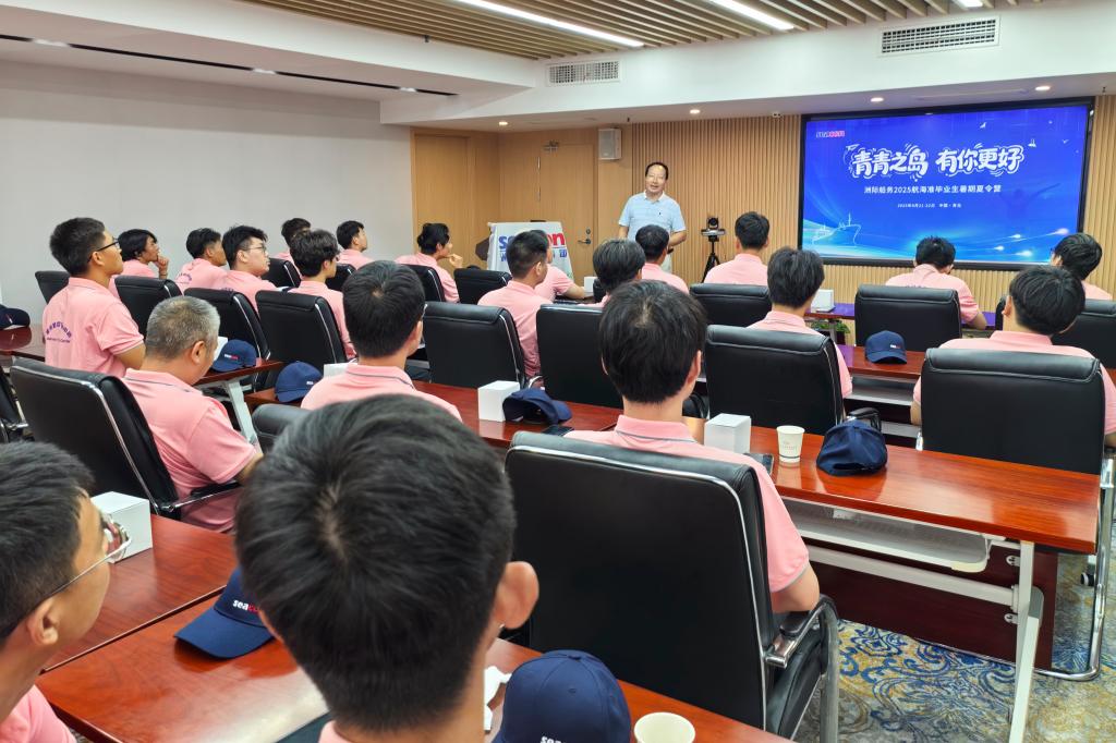 在产教融合实践环节,洲际船务集团深度开放产业链核心资源,为学子打造沉浸式学习场景。8月21日,学子们走进洲际船务集团总部,通过航运业务板块专题讲座,系统了解海运价值链全流程运作。在船员职业规划分享会上,企业资深导师结合288艘船舶的综合管理经验,解析海员市场行情与职业发展路径,将行业前沿动态转化为鲜活的教学案例。当天下午,学子们还参与了石老人海边团建与五四广场帆船出海实训活动,在实操中深刻体会 “同舟共济、协同协作” 的航海精神,实现课堂理论知识与实操技能的无缝衔接。