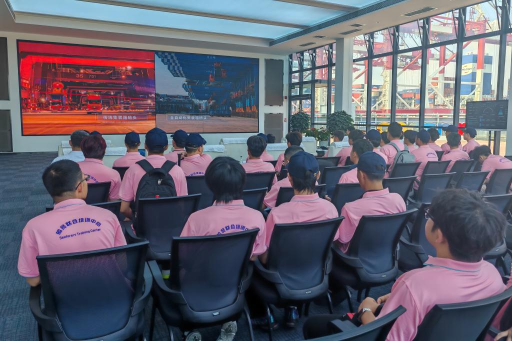 港口作为航运业的核心场景,是产教融合的重要实践载体。8月22日,学子们前往前湾工作船码头与青岛港全自动化集装箱码头参观学习。在全自动化码头,无人集装箱卡车、智能调度系统等前沿技术的展示,让学子们直观感受现代航运业的智能化转型趋势。企业技术骨干全程随行讲解,将港口运营管理知识融入实地教学,实现了“行走的课堂”育人效果。