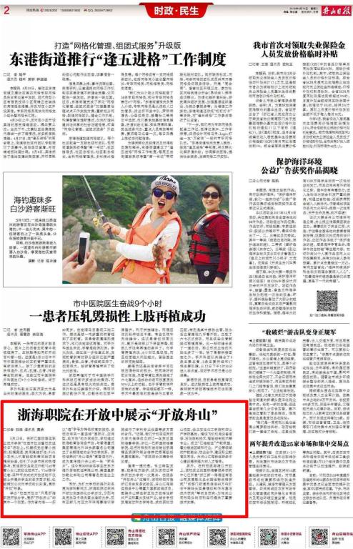 《舟山日报》:浙海职院在开放中展示“开放舟山”