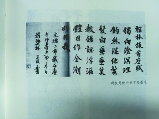 明极楚俊《过碧岛》一诗的墨迹,曾在荣宝斋(南京)2017年春季拍卖会上亮相,最终收槌成交价126.5万元。这轴行书《过碧岛》所录二诗,第一首即天岸慧广《过碧岛》原诗,第二首应是明极楚俊依韵唱和之作。