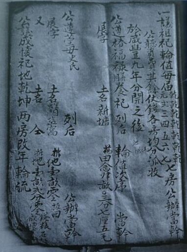 高家分关书还专门辟出“尊先祖祭祀田亩”一项,其中在牛栏丘、路下槌、三分塘里共有祭祀田约九亩三分八厘,以保证今后家族祭祀之用。
