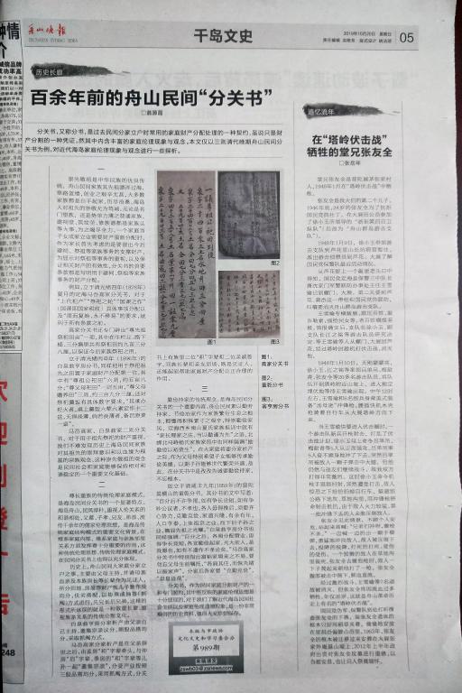 分关书,作为民间家庭分割财产的一种专门契约,其中所反映的家庭伦理思想是十分显现的,对于我们了解近代海岛民间社会生活以及家庭伦理道德现象,是一份非常难得的历史资料,值得大家珍惜保存。