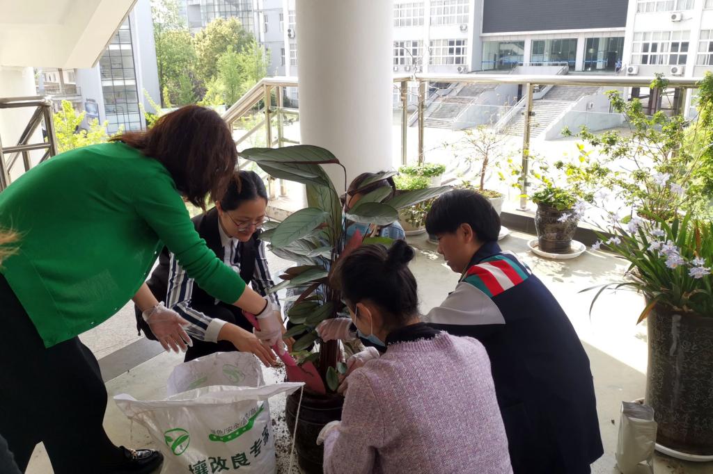 活动中,师生代表热情高涨、干劲十足,大家齐心协力,分工明确,合作默契,有的搬运绿植花卉,有的持铲挖土,有的扶苗填坑,有的挥铲培土,一株株美丽的花草在微风中昂扬挺立,展现出勃勃生机,经过他们的辛勤劳动,教室走廊焕发了新绿,为春光明媚的四月增添了盎然的绿意。