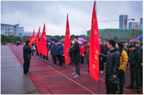 校工会主席刘相致健步走活动开幕词,健步行起点为学校田径场,沿海景道至体育路路口折返,来回全程约6公里,沿途可尽赏临城美景,尽感徒步健身之乐。活动中,以各二级分工会为方队,在会旗的带领下,队伍浩浩荡荡,气氛欢快和谐。虽然活动受天气影响,潮湿阴冷,但大家在欢声笑语中健步而行以昂扬饱满的精神状态迎接新一年的到来。